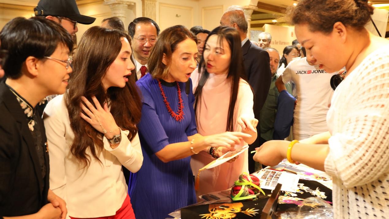在今年5月18日“茶和天下——甘肅文旅推廣”安曼現(xiàn)場(chǎng),唐彩萍現(xiàn)場(chǎng)制作的麥桿畫(huà)以獨(dú)特魅力驚艷全場(chǎng),約旦王妃和加莉拉公主被其精湛的工藝深深吸引,親自上手體驗(yàn)后豎起大拇指稱她是“奇人”。今年6月在“根與魂——甘肅省非遺澳門展演會(huì)”上,唐彩萍制作的麥桿畫(huà)《和平鴿》《中國(guó)龍》贏得與會(huì)人士的高度贊賞,澳門特別行政區(qū)政府文化局局長(zhǎng)梁惠敏稱贊其“不同凡響,值得傳承發(fā)揚(yáng)”,并當(dāng)場(chǎng)邀請(qǐng)?zhí)撇势紴榘拈T小朋友傳授麥桿畫(huà)的制作方法。