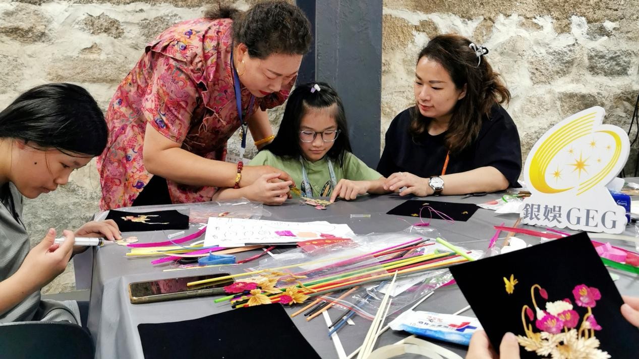 (唐彩萍在澳門教小朋友制作麥稈畫(huà))