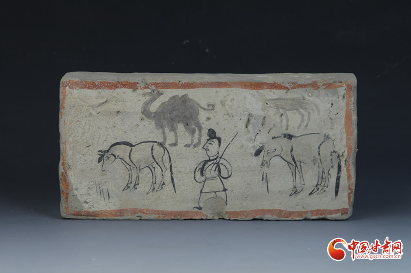 而在眾多璀璨的壁畫磚中,一件名為《牧馬、駱駝圖壁畫磚》的館藏一級文物,在美術(shù)界引發(fā)了強烈反響。這件壁畫磚現(xiàn)收藏于高臺縣博物館,畫面中央繪有一位身著交領短衫、緊腰束帶的牧人,他手執(zhí)長鞭,正在悠然放牧。草地上,馬群、駱駝、毛驢等牲畜或低頭覓食,或悠然自得。