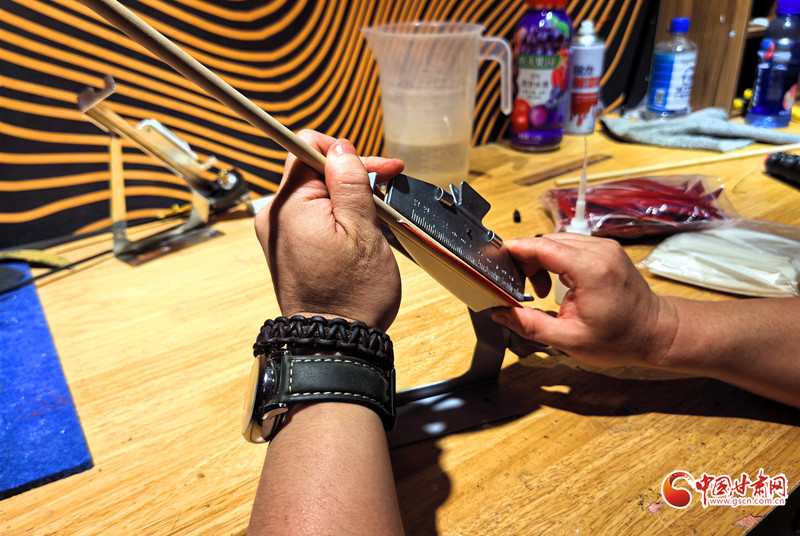 2011年,還是大學(xué)生的謝建戈在百度貼吧結(jié)識了山東臨沂“高氏傳統(tǒng)弓箭”非遺傳承人高超。囊中羞澀的他提出“先貨后款”,高超被這份赤誠打動,寄來第一套玻片弓料。一個(gè)月后,生活費(fèi)一到賬,他第一時(shí)間把錢打了過去——網(wǎng)絡(luò)那端的高超從此記住了這個(gè)甘肅小伙。2012年,他做出人生第一把玻片弓。