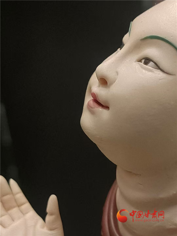 楊凱說,壁畫是平面的,也是立體的,看著石窟中那些栩栩如生的人物,他就想著如何讓這些繪畫在空間立體起來,成為蘊(yùn)含豐富敦煌元素的面塑。