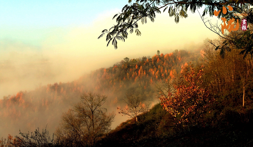 遠(yuǎn)處的樹(shù)木被冬霜精心“染色”,墨綠、淺黃、緋紅層層疊疊,形成鮮明對(duì)比,共同繪成了一幅水彩畫。