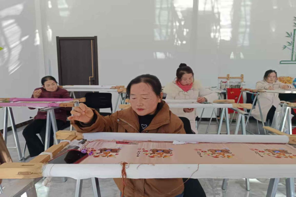 “以前特別自卑,不敢出門(mén)。”袁紅艷是一名殘疾人,曾經(jīng)的她因身體缺陷長(zhǎng)期封閉自我。轉(zhuǎn)變始于2005年一次鄉(xiāng)鎮(zhèn)刺繡培訓(xùn),在這場(chǎng)培訓(xùn)活動(dòng)中,她結(jié)識(shí)了左煥茸老師,從此踏入刺繡行業(yè)。