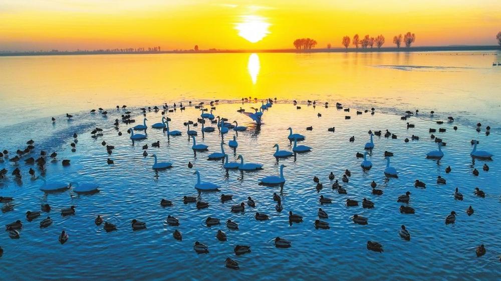 11月20日,甘肅金塔縣芨芨水庫濕地,遷徙越冬的白天鵝、赤麻鴨成群翔集湖面,成為初冬一道靚麗風(fēng)景。近年來,金塔縣持續(xù)改善生態(tài)環(huán)境,加強(qiáng)濕地保護(hù)與修復(fù)工作,為水鳥提供了理想的棲息場(chǎng)所,每年在此棲息的候鳥多達(dá)數(shù)萬只。 奔流新聞·蘭州晨報(bào)通訊員 曹紅祖 李鵬 段金龍 攝