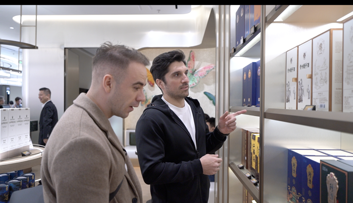 除了眾多國際知名品牌外,人氣潮玩周邊和福州特色文創(chuàng)產(chǎn)品柜臺(tái)人氣最高。來自中東的網(wǎng)紅達(dá)人Zein說,他看到了很多手工的非遺工藝品,如軟木畫、脫胎漆器,這些精巧的非遺技藝讓他震驚。