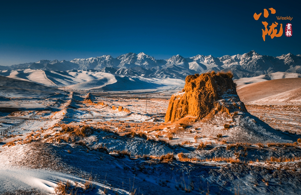 潔白的馬牙雪峰在遠處閃爍著冷冽的光芒,巍峨而孤高;而眼前,明漢長城的夯土墻體在陽光下泛著溫暖的土黃,宛若大地的血脈。這一冷一暖在此相遇——一端是自然雕琢的冰晶詩篇,一端是人類寫就的黃土史詩,共同構(gòu)成一幅跨越千年、連接天人的壯闊畫卷。