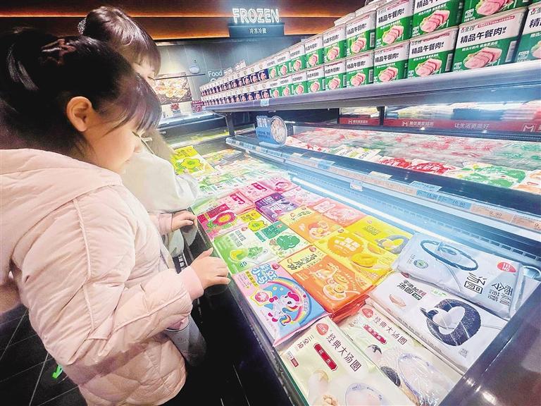 市民趙女士精心挑選果味元宵:“上次購(gòu)買的這款爆心啵啵元宵口感清爽細(xì)膩,老人孩子都愛(ài)吃,我們還跟著教程做了不同吃法,這不馬上快元宵節(jié)又逢開(kāi)學(xué),特意多囤一些。”市民李女士帶著孩子選購(gòu)了一款“馬到成功”奧巧味元宵。“往年多吃黑芝麻、水果味的元宵,今年想嘗點(diǎn)新意,這款價(jià)格實(shí)惠,孩子也喜歡。”李女士說(shuō)。