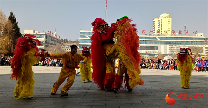 演出場上,雄獅、金龍、高蹺、春牛伴著春風舞動,太平鼓、嗩吶、銅鈸奏響新春旋律,生動再現(xiàn)了和政群眾蒸蒸日上的幸福生活。演員們扮相精致、身姿靈動,高蹺表演者彩扇輕搖、絲巾飛舞,盡顯民間藝術(shù)的獨特韻味。