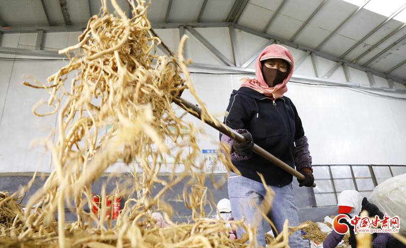3月17日,在位于民樂縣順化鎮(zhèn)的正生藥業(yè)有限公司中藥材切片車間內(nèi),工人們正在分揀、切片、晾曬中藥材。