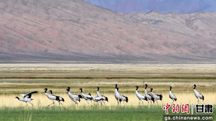 近五年來,保護區(qū)記錄的野生動物越來越多,生物多樣性也越來越豐富。圖為肅北縣記錄到的黑頸鶴。(資料圖)酒泉市融媒體中心供圖
