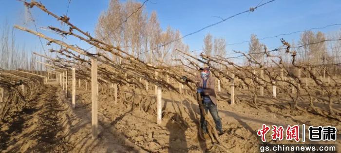圖為敦煌市陽關鎮(zhèn)萬畝葡萄枝蔓出土上架。敦煌市委宣傳部供圖