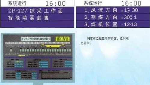 例如綜放工作面智能定位噴霧降塵系統(tǒng)工作面監(jiān)控信息包括:采煤機當(dāng)前的所在位置、允許方向、架間噴霧點道數(shù)、割煤道數(shù)、當(dāng)前移架和放煤及噴霧道數(shù)、生產(chǎn)允許圖標(biāo)及近3個月內(nèi)的生產(chǎn)運行記錄等。